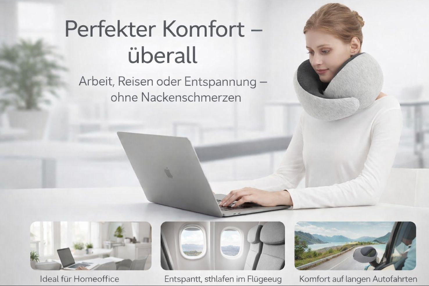 Premium Reise-Schlafset – Memory-Foam Nackenkissen + Schlafmaske + Ohrstöpse